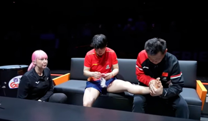 6个小时内,孙颖莎打了三场角逐。鄙人午场打了混双半决赛,晚间七点半她加入了女单第一场半决赛,角逐途中产生了左脚脚踝受伤,随队大夫出场进行了告急措置后,她和蒯曼的半决赛又继续进行,仍是感受不适不能不公布退赛,这也是孙颖莎职业生活生计初次在角逐中退赛。距离一个多小时后,孙颖莎带伤又加入混双决赛。角逐中看出她步履缓慢,脚步移动不再那末矫捷,很快的0-3输失落决赛,这也是孙颖莎/王楚钦混双组合在决赛中第一次输失落决赛。